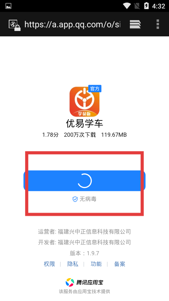 3、點(diǎn)擊后頁(yè)面會(huì)自動(dòng)跳轉(zhuǎn)至應(yīng)用的下載界面,在該界面中找到明顯的下載按鈕并點(diǎn)擊,根據(jù)手機(jī)屏幕上彈出提示下載安裝,即可更新到最新版本。