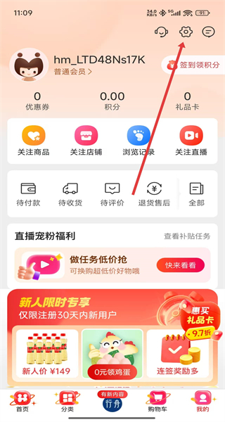 1、在個(gè)人中心頁面點(diǎn)擊右上角設(shè)置按鈕,進(jìn)入設(shè)置頁面。
