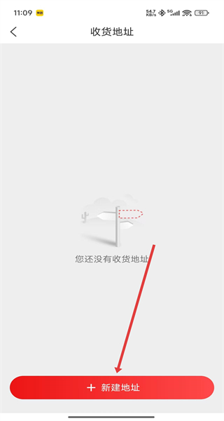 3、在收貨地址頁面點(diǎn)擊“新建地址”,進(jìn)入新建收貨地址頁面。