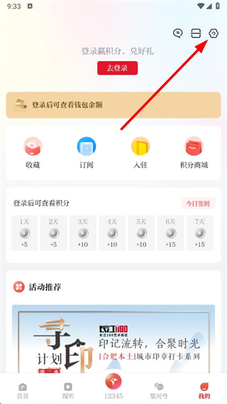 2、在我的頁面,點擊右上角設(shè)置圖標,進入設(shè)置界面。