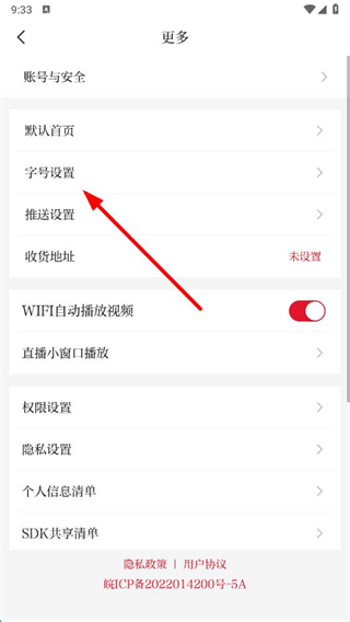 3、在設(shè)置的更多頁面中,找到字號設(shè)置選項并點擊。