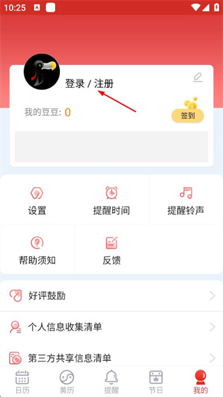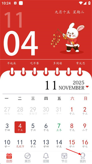 1、打開該日歷軟件,點(diǎn)擊右下角“我的”。