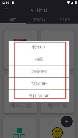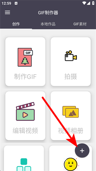 1、打開GIF制作器應(yīng)用,點(diǎn)擊右下角的加號(hào)按鈕,選擇制作GIF選項(xiàng)。