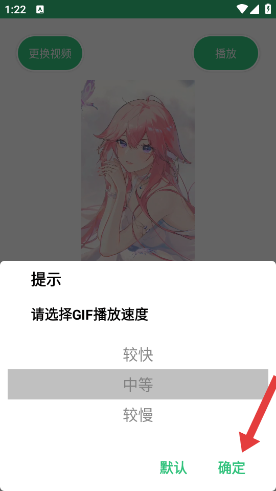 4、在請選擇GIF播放速度提示框中,選擇播放速度后,點擊確定完成格式轉(zhuǎn)換。