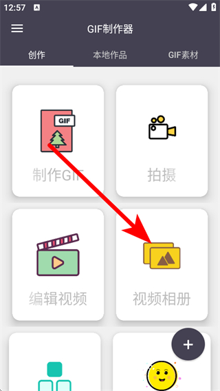 1、打開GIF制作器應用,點擊視頻相冊選項。