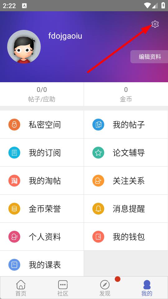 2、在個(gè)人頁面右上角,點(diǎn)擊設(shè)置圖標(biāo)齒輪形狀,進(jìn)入個(gè)人設(shè)置界面。