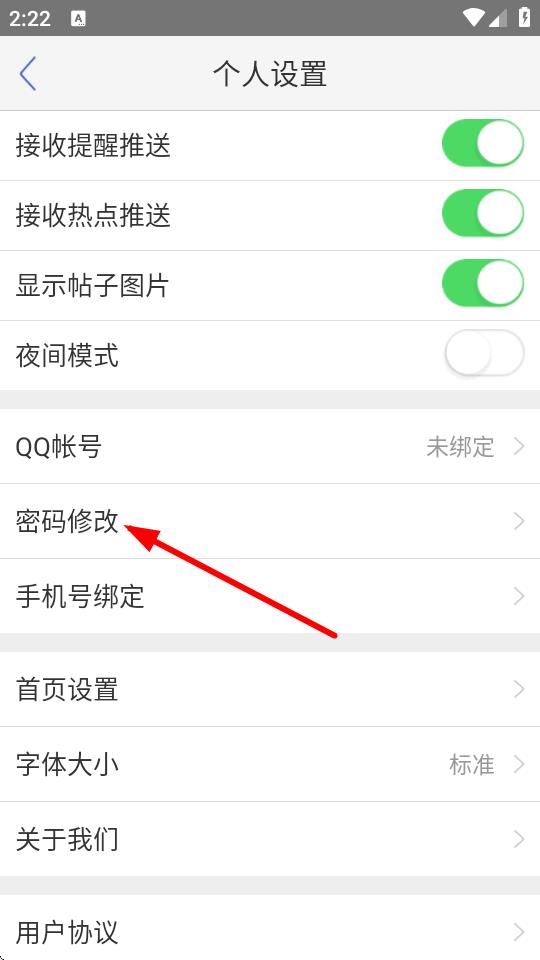 3、在個(gè)人設(shè)置界面中,找到并點(diǎn)擊密碼修改選項(xiàng)。