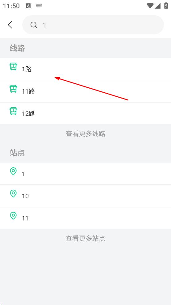 3、在公交查詢頁面,搜索或?yàn)g覽公交線路,選擇自己需要查詢的線路,比如“1路”,點(diǎn)擊該線路。