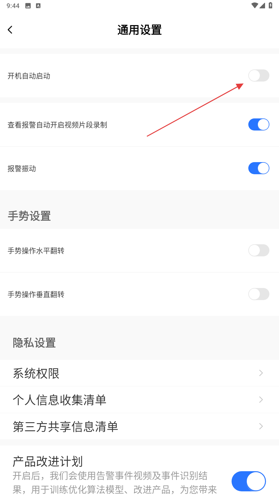 4、在通用設(shè)置下,找到開啟自動啟動并啟動右側(cè)的開關(guān)即可。