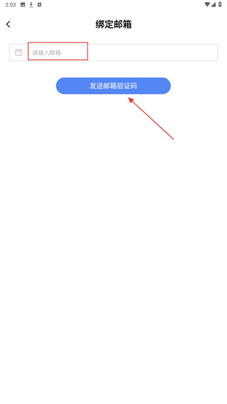 4、輸入郵箱后,點擊發(fā)生郵箱驗證碼即可開始綁定。