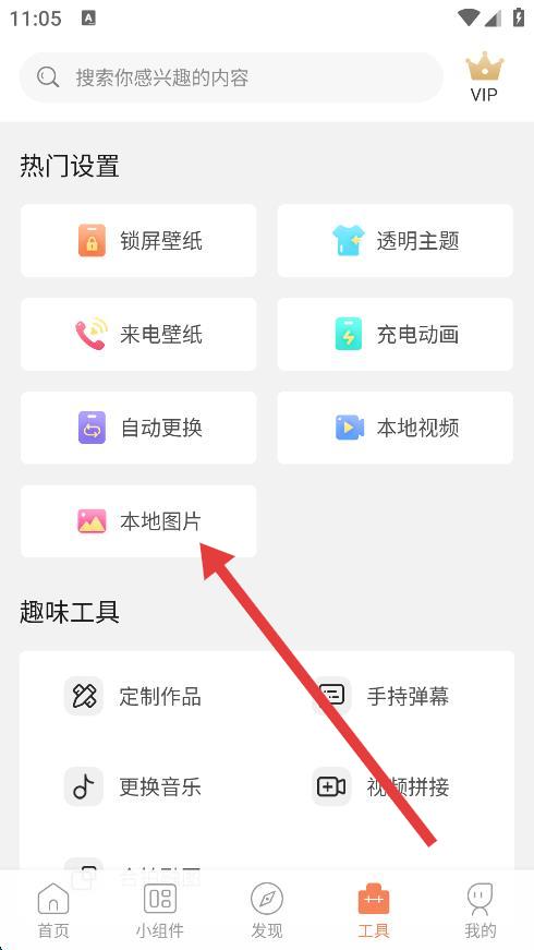 2、在工具頁面的熱門設(shè)置板塊中,點擊本地圖?選項。