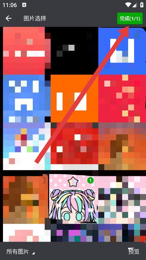 3、進入圖片選擇界面后,選擇需要的圖片,點擊右上角的完成按鈕。