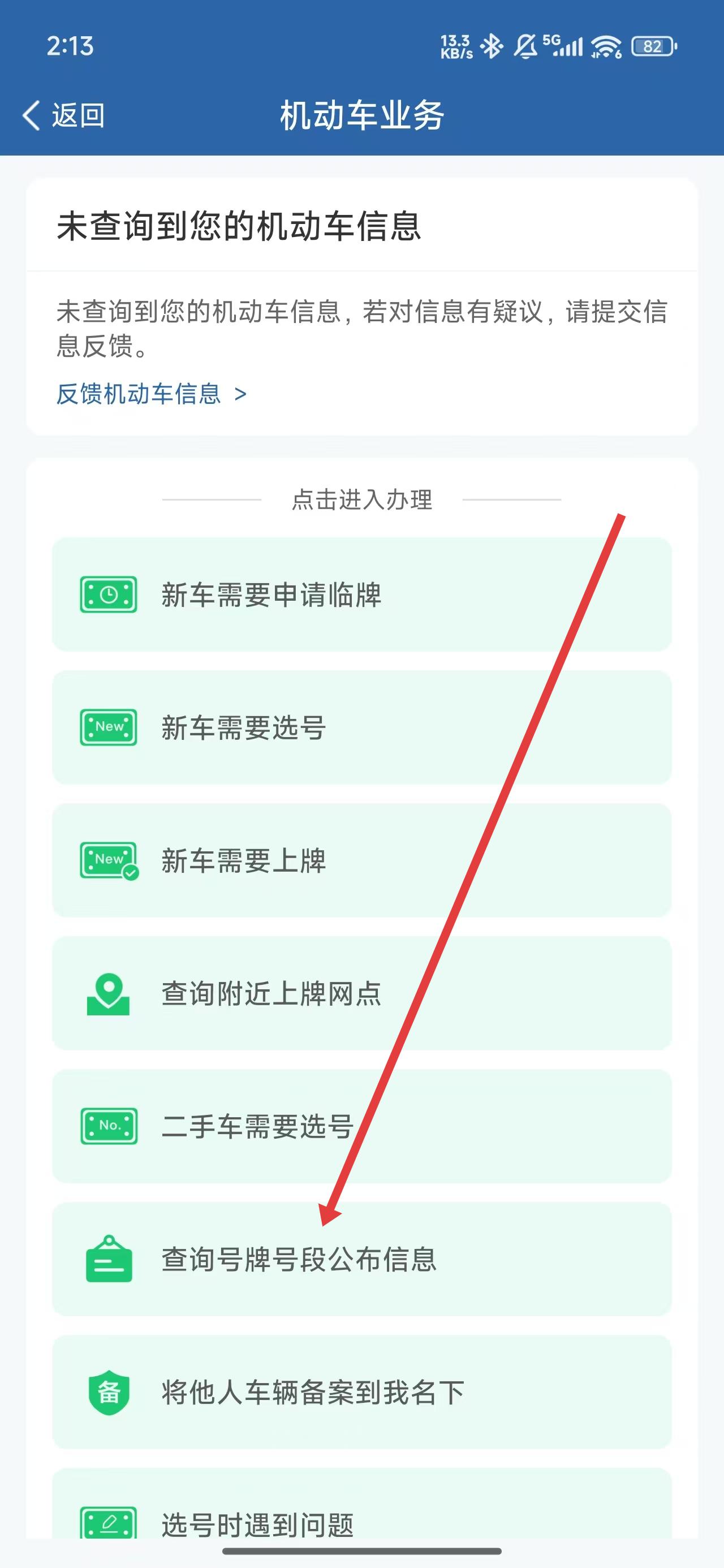 3、點擊查詢號牌號段公布信息業(yè)務(wù)選項,開始進(jìn)入辦理。