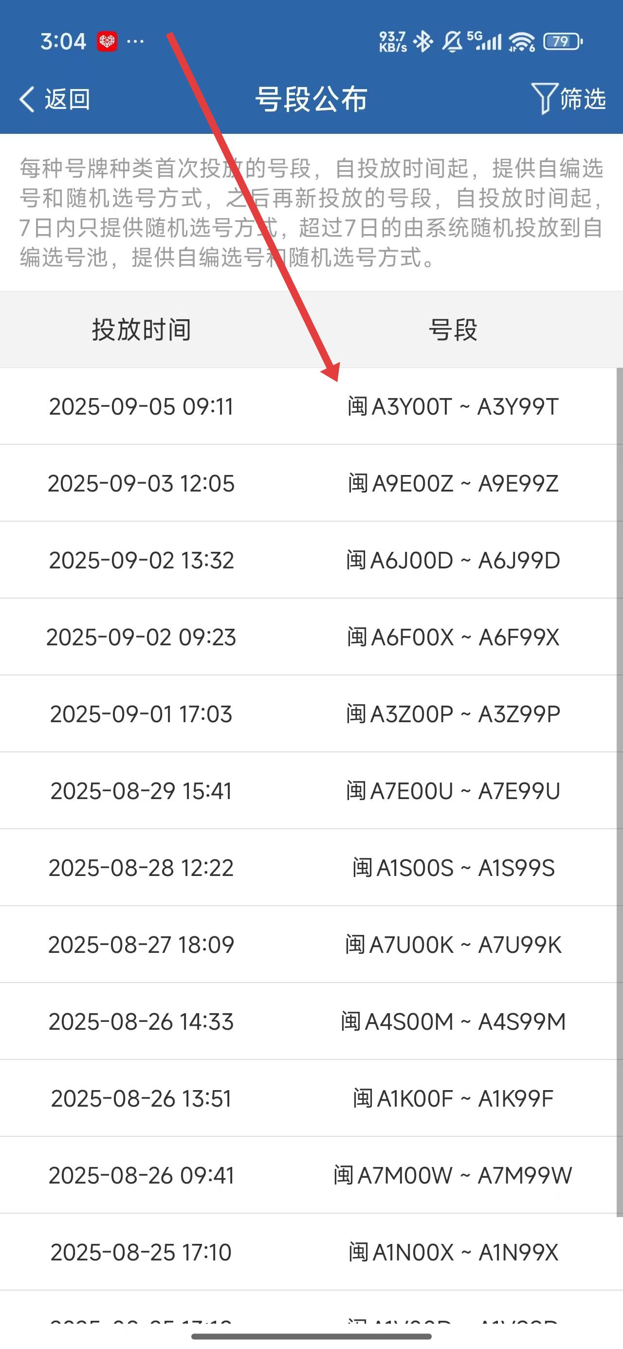4、在號段公布頁面中,可以查看到投放時間對應(yīng)的那些號段。