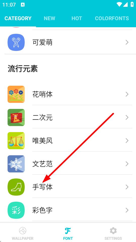 2、在字體分類頁面,瀏覽并選擇喜歡的字體類別,比如點擊手寫體。