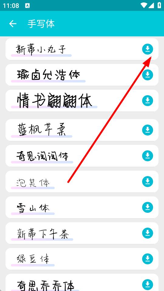 3、進入對應(yīng)字體類別頁面后,找到想下載的字體,點擊其右側(cè)的下載按鈕。