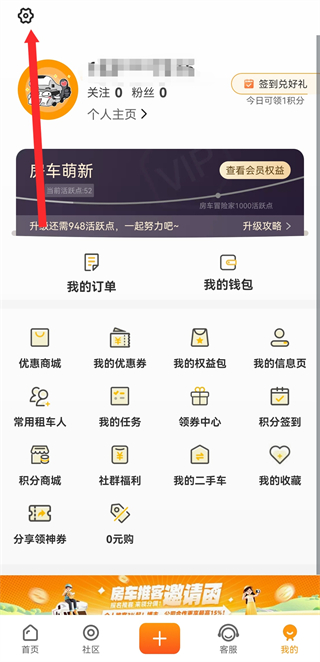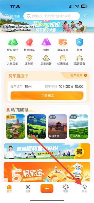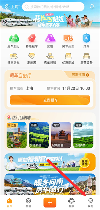 1、打開(kāi)房車生活家APP,點(diǎn)擊右下角我的,進(jìn)入個(gè)人頁(yè)面。