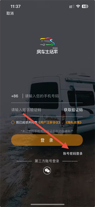 2、在登錄頁(yè)面點(diǎn)擊賬號(hào)密碼登錄選項(xiàng),切換到密碼登錄模式。