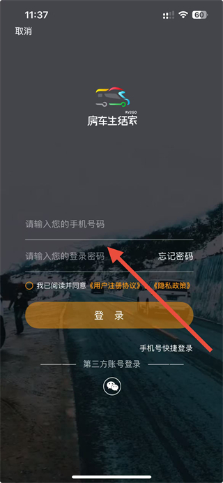 3、在密碼登錄頁(yè)面輸入手機(jī)號(hào)和密碼。