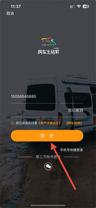1、在房車生活家app首頁(yè)點(diǎn)擊我的選項(xiàng),進(jìn)入登錄頁(yè)面。
