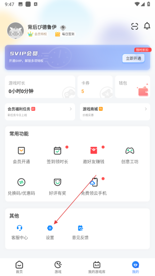 1、打開(kāi)云電腦,在個(gè)人頁(yè)面點(diǎn)擊設(shè)置,進(jìn)入設(shè)置界面。