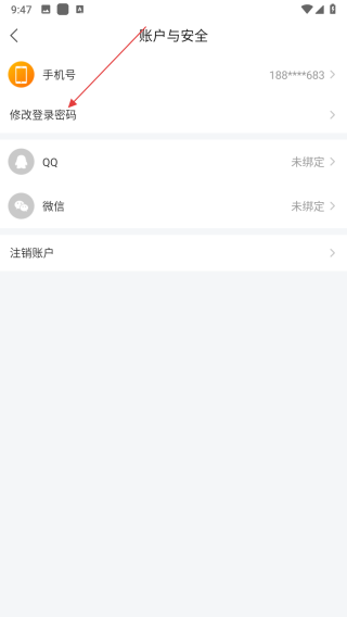 3、在賬戶與安全頁(yè)面,點(diǎn)擊修改登錄密碼選項(xiàng)。