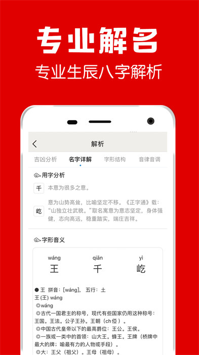 2.綜合生辰八字、五行喜用、三才五格、生肖喜忌、字形意義等,多角度分析起名。