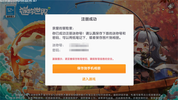 4、賬號注冊完成可以選擇保存到手機相冊里面,就不用擔(dān)心自己會忘記密碼了;
