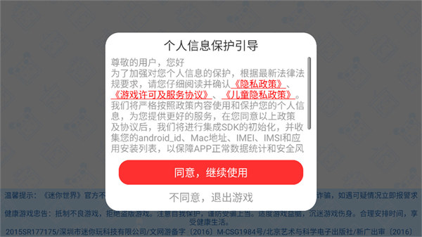 1、進(jìn)入到游戲之后閱讀隱私政策和用戶協(xié)議,點擊同意之后就能進(jìn)入到游戲;