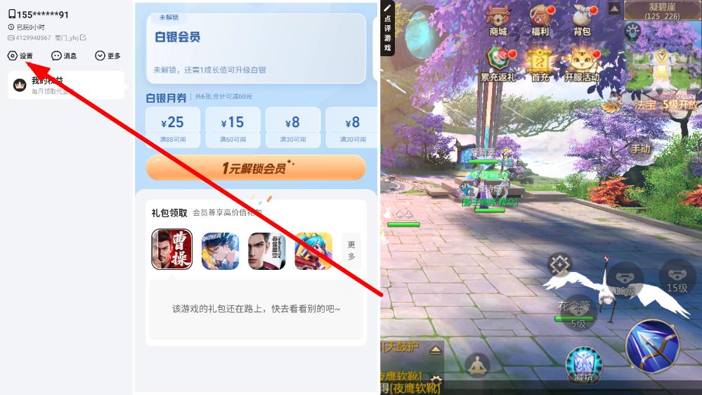 2、進入游戲后,點擊左上角小地圖旁的設置圖標,打開設置入口。