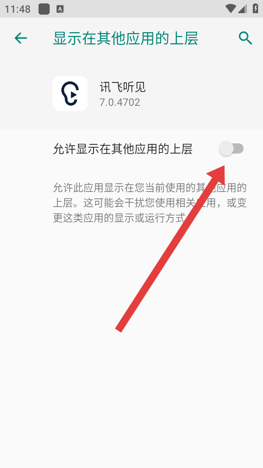 4、開啟允許顯示在其他應(yīng)用的上層開關(guān),即可通過懸浮字幕實現(xiàn)實時翻譯。