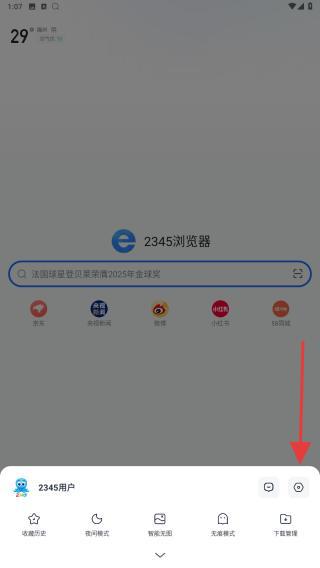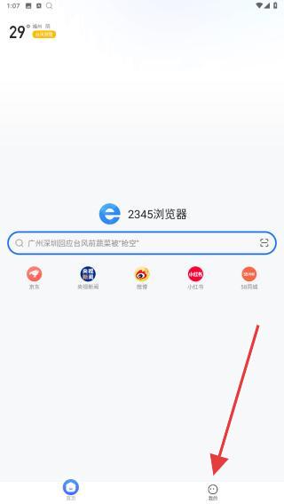 1、打開(kāi)2345瀏覽器APP,在首頁(yè)內(nèi)點(diǎn)擊下方我的圖標(biāo)。