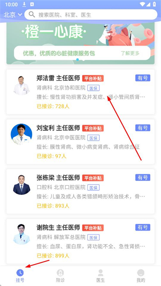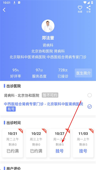 2、選擇醫(yī)生有號(hào)的出診時(shí)間和醫(yī)院,點(diǎn)擊掛號(hào)。