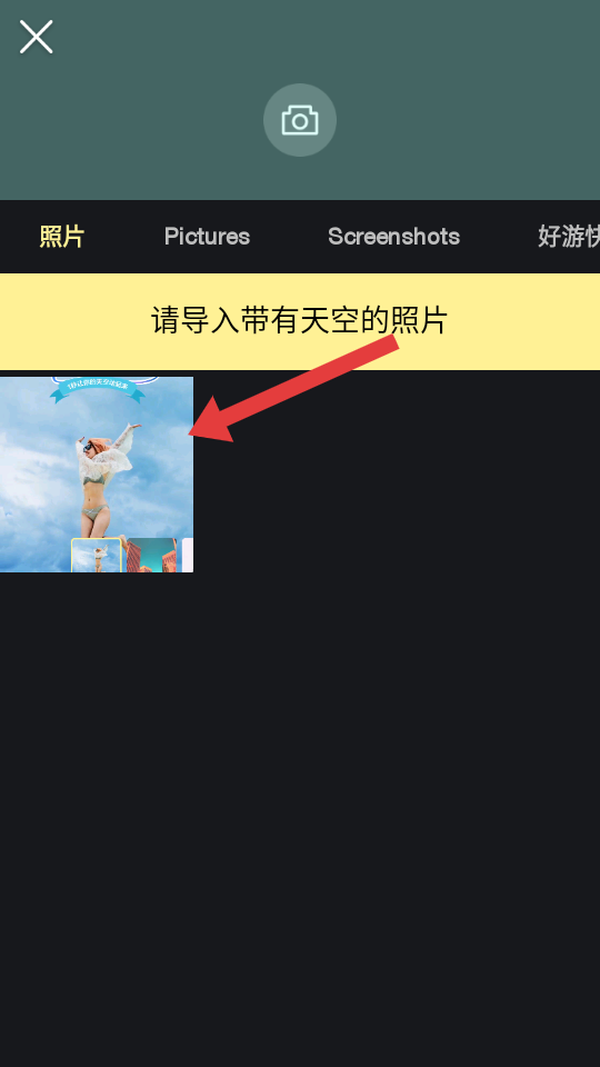 2、在照片導(dǎo)入界面,選擇并導(dǎo)入一張帶有天空的照片,進(jìn)入照片編輯頁(yè)面。
