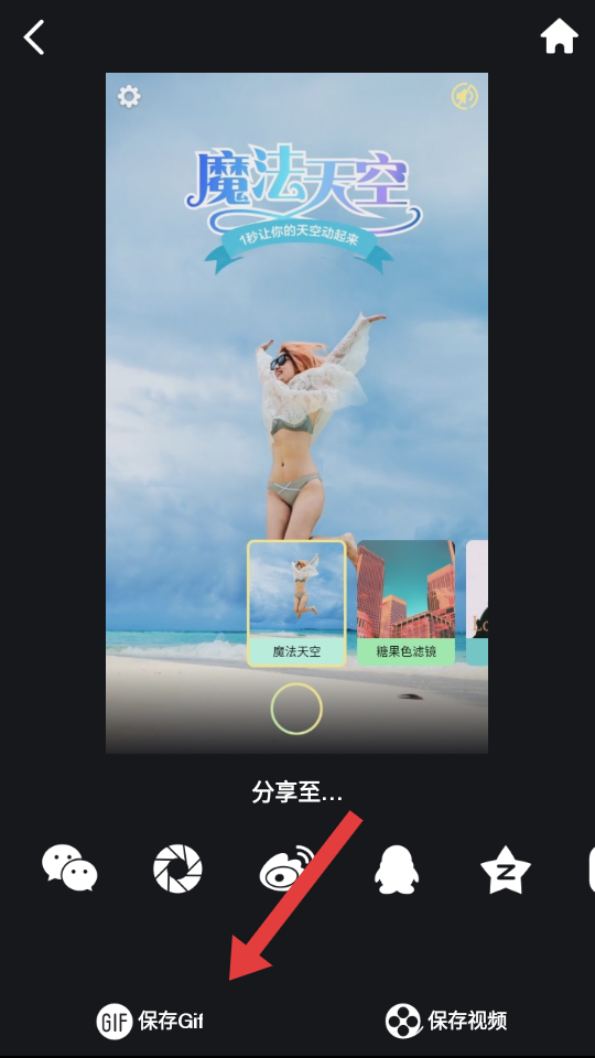 4、在分享與保存的選項(xiàng)中,需要選擇保存Gif格式,完成照片的導(dǎo)出。