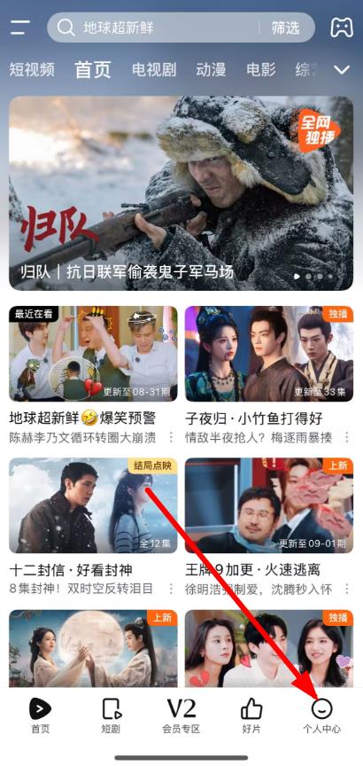 1、打開騰訊視頻APP,點(diǎn)擊底部導(dǎo)航欄中的個(gè)人中心。