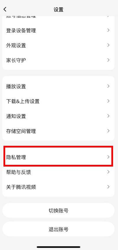 3、在設(shè)置頁面中,找到并點(diǎn)擊隱私管理。