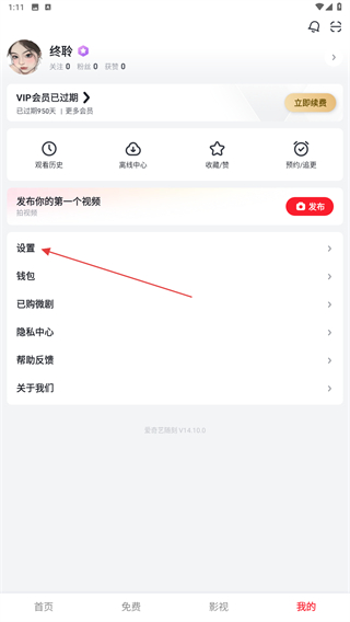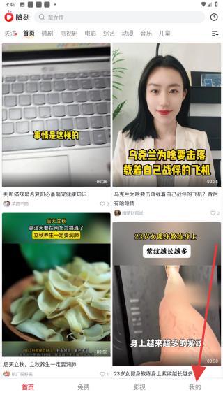 1、啟動愛奇藝隨刻的APP,進(jìn)入時點擊導(dǎo)航欄中我的按鈕。