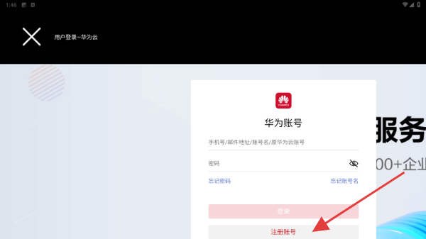 1、打開APP,未登錄的情況下,一開啟會直接進(jìn)入登錄頁面,點擊頁面下方注冊賬號的按鈕。