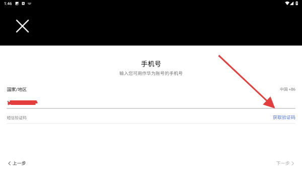 2、在注冊的界面內(nèi),輸入要注冊的手機(jī)號并點擊獲取驗證碼。
