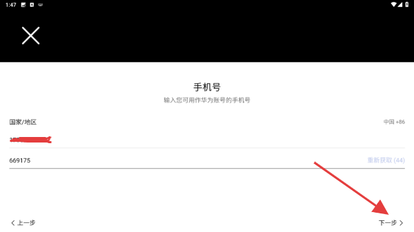 3、將收到的驗證碼的輸入進(jìn)去,再點擊下一步的按鈕。