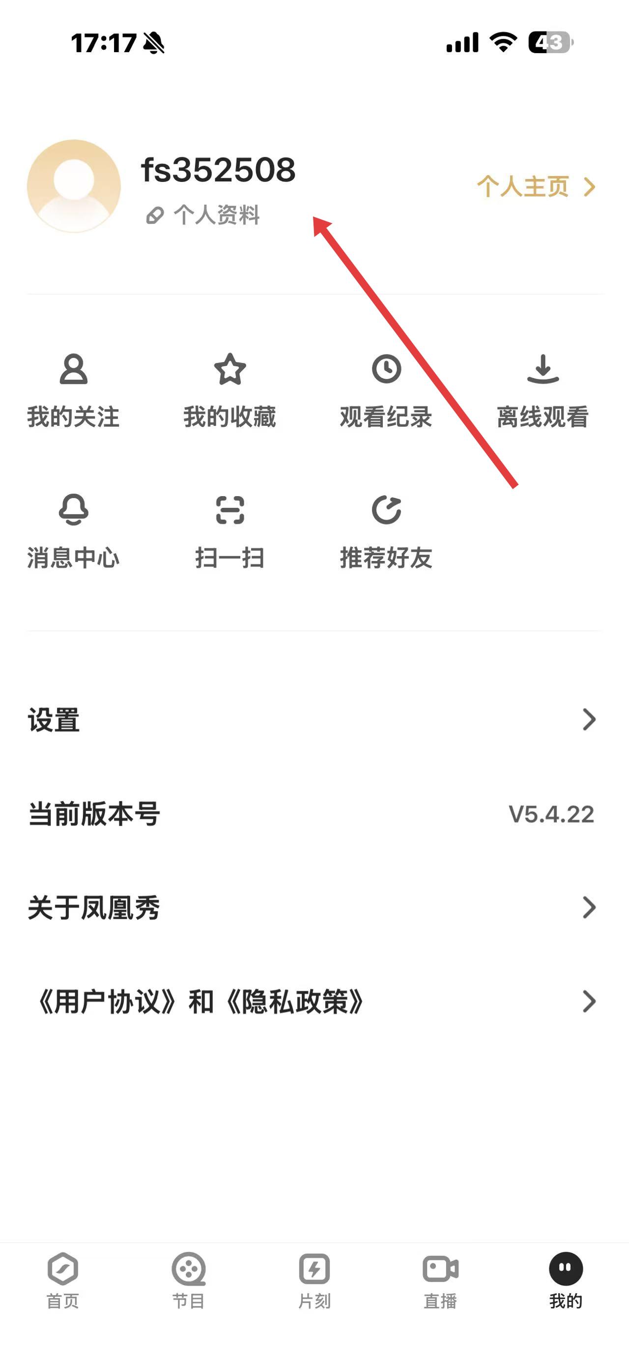 1、打開鳳凰秀App,點擊底部導航欄中的我的進入個人頁面。