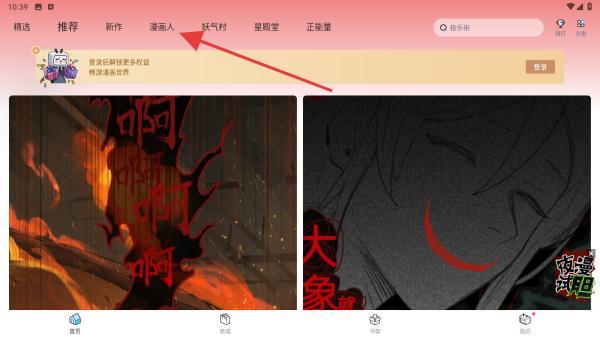 1、進(jìn)入b站漫畫APP,進(jìn)入到首頁內(nèi),點(diǎn)擊上方漫畫人的圖標(biāo)。