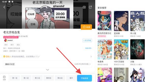 3、進(jìn)入漫畫的詳情頁面內(nèi),點(diǎn)擊下方開始閱讀的功能按鈕。