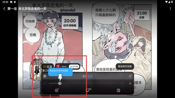 4、點(diǎn)擊閱讀后,可開始觀看漫畫內(nèi)容,滑動(dòng)可看下一頁,也有不同的功能按鈕。