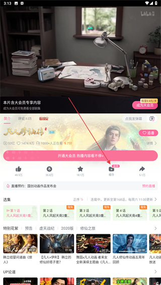 3、進(jìn)入動(dòng)畫播放的頁面內(nèi),點(diǎn)擊畫面下方緩存的按鈕即可。