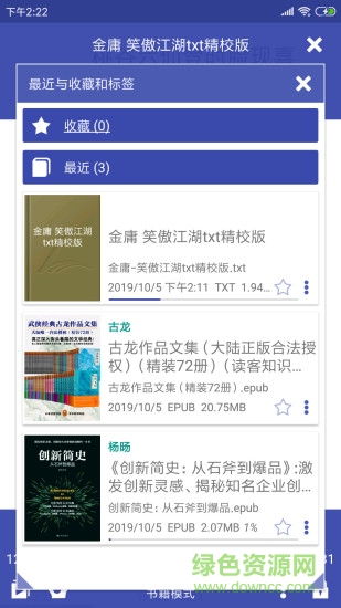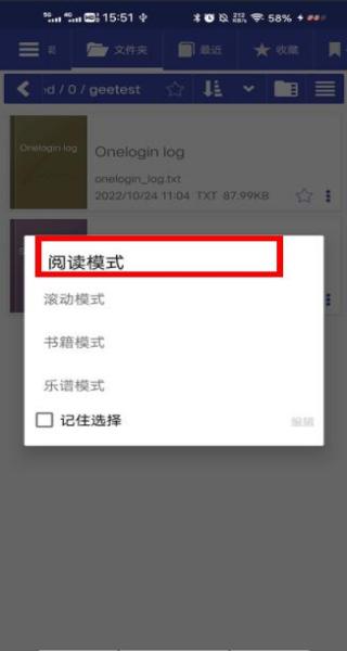 1、在文件閱讀APP界面,點(diǎn)擊收藏選項(xiàng),彈出模式選擇列表。
