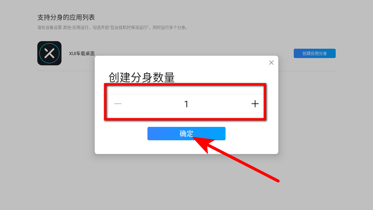 3、在創(chuàng)建分身數(shù)量選擇框中,選擇要?jiǎng)?chuàng)建的分身數(shù)量后點(diǎn)擊確定按鈕。