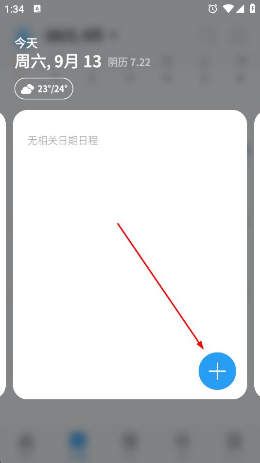 2、在選擇日期后的頁面中,點擊右下角的藍色+圖標,以添加新的事項。