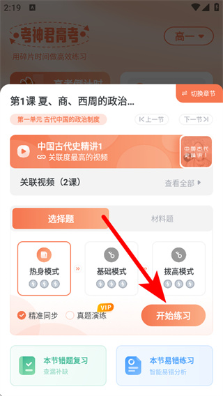 2、在練習頁面選擇練習模式后,點擊開始練習,進入題目作答環(huán)節(jié)。